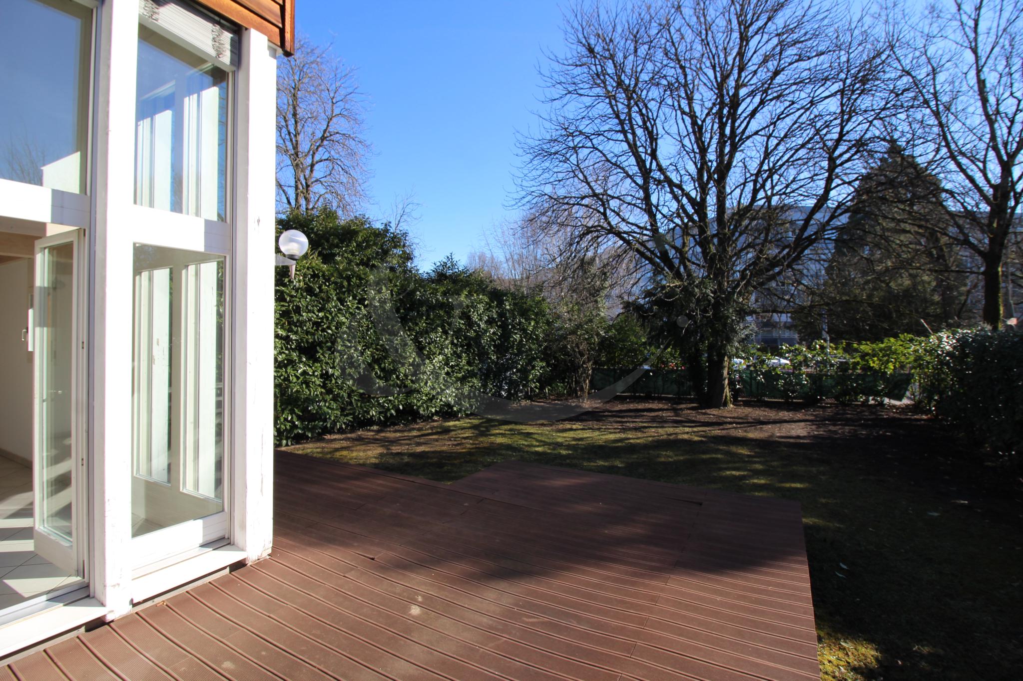Pour finir, il existe une terrasse faisant le tour de la maison, un joli jardin ainsi qu’un couvert à voiture avec une capacité pour deux véhicules.